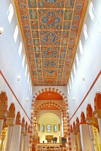 Pored oltara i klaustra, oslikani drveni strop (iz oko 1230.) je najznamenitiji u unutrašnjosti crkve. Na stropu je prikazano obiteljsko stablo Isusa Krista. Biskup Bernward je želio napraviti stupove glanog broda u Niedersächsischer Stützenwechsel stilu, dakle, kvadratični stupovi koji se završavaju kružnima. Iznad njih zidovi su otvoreni polukružnim prozorima koji privlače svjetlo. Nadalje, prozori na zidovima bočnih brodova, iza arkadne kolonade, su u gotičkom stilu, a njihovi svodovi su križni.