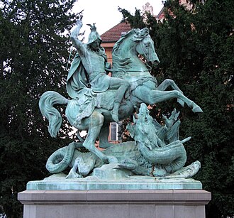 Anton Dominik Fernkorn, Sv. Juraj ubija zmaja, Zagreb, Trg Republike Hrvatske, brončani odljev po izvorniku u cinku (1855.), primjer nestručno izvedene restauracije