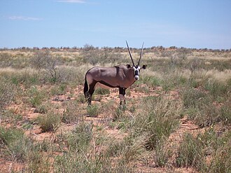 Nacionalni park Kalahari Gemsbok, osnovan još 1931., je jedan od najvećih zaštićenih ekosustava u južnoj Africi jer se nastavlja na Nacionalni park Gemsbok u Bocvani[3]. Ova dva područja su 2000. godine ujedinjena u prekogranični park Kgalagadi („Mjesto žeđi”) od 42.000 km², tako da je omogućena opsežna sezonska migracija oriks antilopa (gemsbok) po kojima su oba parka dobila imena. Ukupno