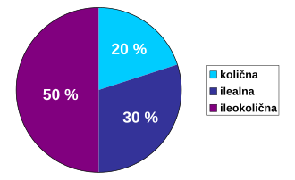 Dio debelog crijeva odstranjen kirurški kolektomijom s transmuralnom upalom, koja zahvaća sve slojeve stijenke crijeva.