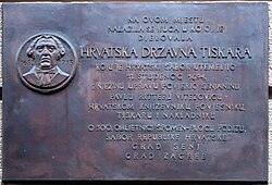 Spomen ploča na zgradi u kojoj je djelovala Hrvatska državna tiskara kojom je upravljao Pavao Ritter Vitezović