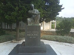 • Brončana skulptura Mate Celestina Medovića (rad Ivana Meštrovića iz 1954. godine) postavljena je 1970. godine u rodnoj mu Kuni, u Celestinov perivoj.[6]