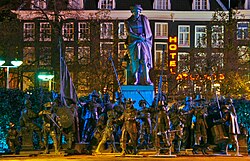 - ↑ Imena osamnaest portretiranih redarstvenika se nalaze na šitu iznad portala, ali stručnjaci još uvijek nisu spojili sva imena s licima na slici.