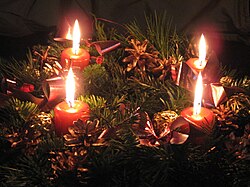 Adventska svijeća pali se svaki dan od početka prosinca pa sve do Badnjaka. Običaji vezani za adventsku svijeću, navjerojatnije su nastali u Njemačkoj te se proširili u druge europske zemlje, prvenstveno u protestanskim zajednicama. Češće se može vidjeti u kućanstvima, nego u crkvenim prostorima. Postepeno gori svaki dan u prosincu, čime se iskazuje iščekivanje Božića te simbolički pokazuje koliko još ima dana do Božića.[17]