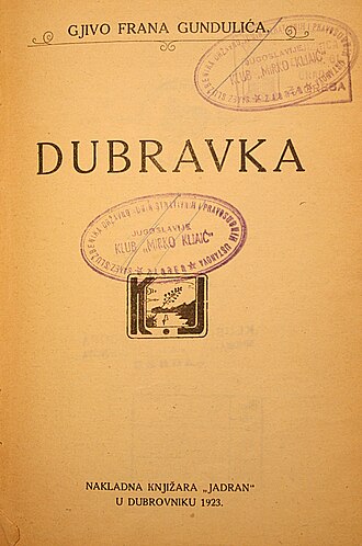 - Ivan Gundulić: Dubravka: pastirska igra u 3 čina, s uvodom Franje Markovića, Zagreb, 1888.
