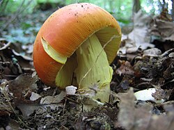• Klobuk blagve je širok od 6 do 20 centimetara, krasne narančastocrvene boje, poput zrele rajčice; sad prevladava žuta, sad crvena boja; u mladosti mesnat, okrugao, zatim jajast i na kraju otvoren; obod je pravilan a pod starost ucrtkan, malo ljepljiv i redovito gol bez ostataka ovoja; nije isključeno da se ponekad nađe ostatak ovoja u vidu otrgnute bijele krpice.