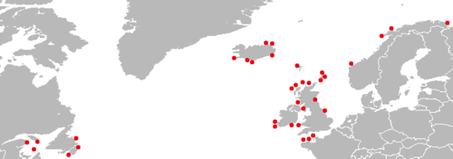 Njihov areal je Sjeverni Atlantik. Obično se gnijezde u velikim kolonijama, na liticama sa pogledom na more ili malenim kamenitim otocima. Najveća kolonija od 60 000 parova živi na otoku Bonaventure u Quebecu, ali 68% svjetske populacije se razmnožava oko Britanskog otočja. Selice su i većina ih zimuje na moru južnije u Atlantskom oceanu.