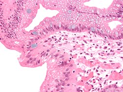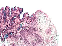 Mikroskopska slika Barrettovog jednjaka. Alcian blue stain.