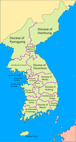 Tijekom 19. stoljeća, vladajuća dinastije Joseon progonila je Katoličku Crkvu uglavnom zbog suprotstavljanja štovanju predaka, koje Crkva smatrao oblikom idolopoklonstva, ali koje je država propisala kao kamen temeljac korejske kulture. Unatoč dugogodišnjem progonu koji je doveo do tisuća mučenika - od kojih je 103 bilo kanonizirano od strane pape Ivana Pavla II. u svibnju 1984., uključujući i prvog korejskog svećenika, sv. Andrije Taegona Kima, zaređenoga 1845. godine i mučenoga 1846. godine - Crkva u Koreji se širila. Papa Franjo kanonizirao je još 124 korejskih katoličkih mučenika 2014. godine. Apostolski vikarijat Koreje nastao je 1831. godine, a nakon proširenja crkvene strukture u narednom stoljeću, osnovana je sadašnja struktura triju Metropolitanskih provincija, svaka s nadbiskupijom i nekoliko sufražanskih biskupija 1962. godine.
