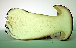 Meso i cjevčice sa kalijevom lužinom posmeđe, a kožica klobuka potamni.