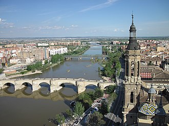 Zaragoza, glavni grad Aragonije, smještena je u plodnoj ravnici uz obale Ebra. U gradu su dvije lijepe katedrale i sjedište drevnog i još i danas vrlo aktivnog sveučilišta.Ima puno mostova na rijeci.