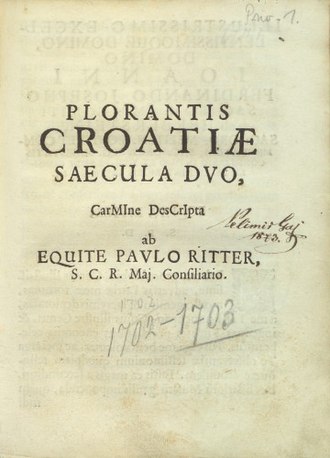 - ↑ 1,0 1,1 1,2 Zrinka Blažević, Dva stoljeća uplakane Hrvatske Pavla Rittera Vitezovića