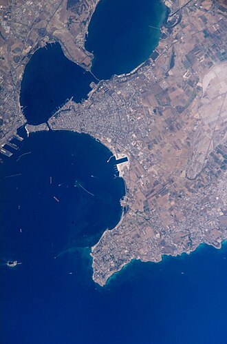 Predložak:Talijanska općina Taranto (lat.: Tarentum) je grad na jugu Italije u regiji Apulija, administrativno središe istoimene pokrajina Taranto, smješten na obali Jonskog mora u Tarantskom zaljevu, na zapadnoj strani poluotoka Salentina ("peta talijanske čizme"). Po veličini je treći najveći kontinentalni grad južne Italije, s preko 190.000 stanovnika.