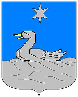 • (HR) Na plavom polju na srebrenim valovima srebrena patka koja pliva, iznad patke šestokraka srebrena zvijezda. [1/46, 2/75]
