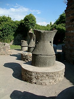 Ponegdje nailazimo na poljoprivredne strojeve složenije konstrukcije. Primjer je mehanička žetelica, koja se prema Pliniju upotrebljavala u Galiji u 1. st. Imala je metalne zube i kotače, a vukle su ju životinje. Čini se da je korištena do 4. st. Tu spada i tijesak za vino s vijkom, te vodenice. Iz Galije potiče i dvodijelni mlat za žito, dva štapa spojena šarkom, koji je bio mnogo praktičnija naprava za vršenje žita nego obični štap ili gaženje. Pompejski mlin je bio rotacioni mlin kojeg je velika prednost pred ranijim vrstama mlinova bilo to što je mogao koristiti snagu životinja (obično magarac, povremeno i konj). Taj je mlin bio prilično jednostavan i jeftin za izradu. Donji je kamen imao oblik tupog stošca, a gornji oblik pješčanoga sata. [2]