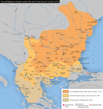 Ovo carstvo naslijedilo je Prvo Bugarsko Carstvo. Bilo je na vrhuncu moći pod Kalojanom i Ivanom Asenom II. nakon križarskoga osvajanja Carigrada 1204. godine. Uspon Nicejskog Carstva to jest Bizanta od 1240. godine i potom mongolska invazija sveli su Drugo Bugarsko Carstvo na drugorazrednu državu čak i u balkanskim okvirima koja je ujedno bila i mongolski vazal.