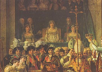 - Joséphine de Beauharnais (1763.–1814.), kleči u podređenoj poziciji, kao što je propisano u Code Napoléonu. Krunu je primila iz ruku svog supruga, a ne pape.
