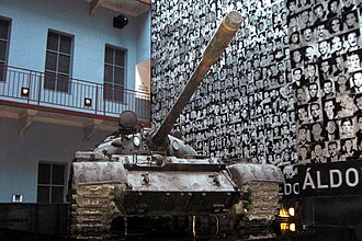 Tematika muzeja je tzv. dvostruka okupacija[1], odnosno vlast nacističkog režima koji je trajao svega pet mjeseci i vlast sovjetskog režima koja je trajala od 1945. do 1956. godine. Sadržaj je zorno prikazan slikama koje su zabilježili fotografi amateri tijekom i nakon rata[1]. Na drugom katu muzeja postavljen je sovjetski tenk T-55 kao jedan od simbola terora i okupacije. Posebna pažnja posvećena je nacističkom progonu židova i političkih neistomišljenika, sovjetskom raseljavanju i deportaciji Nijemaca, Mađara i Slovaka, nasilju nad seljacima, radu tadašnjih tajnih službi i sl. (smatra se da je protjerano preko 700 tisuća ljudi)[1].