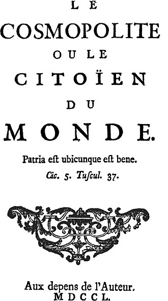 Veliki putnik, Fougeret de Monbron je iskoristio svoja putovanja po čitavoj Europi da bi napisao knjigu Le Cosmopolite ou le Citoyen du Monde (Kozmopolit ili Građanin svijeta). Ovo je izrečeno u maximi prenesenoj u poslovici: ”Svijet je vrst knjige, iz koje je iščitana samo jedna strana ako smo vidjeli samo našu domovinu.”