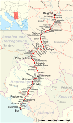 - ↑ Stanje pruge Beograd – Bar alarmantno Politika (objavljeno 1. veljače 2010., pristupljeno 7. veljače 2017.