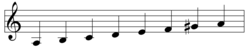 | B Lokrijski | B C D E F G A B | (B-7-5 akord) |