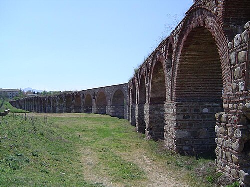 Ova impresivna građevina od kamena i cigle od koje je danas ostalo oko 400 metara sa 55 lukova, dovodila je čistu planinsku izvorsku vodu iz Skopske Crne Gore do grada. Ovaj akvadukt bio je u upotrebi do XVIII st.