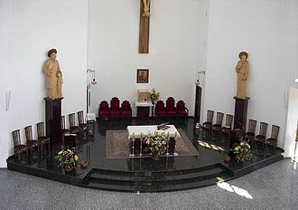 Na vanjskom pročelju nalaze se kipovi svetog Josipa i svetog Franje Asiškog. Iznad ulaznih vrata stoji natpis s riječima: »Isuse, vjerujem u te!«