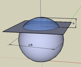 Obujam kuglinog odsječka, ako je kugla polumjera r i visine odsječka h :