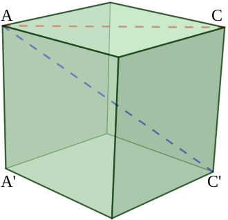 Prostorna dijagonala je dužina koja spaja dva vrha poliedra koji ne pripadaju istoj strani.[1] Duljina prostorne dijagonalne kocke iznosi a√3 gdje je a duljina stranice kocke.