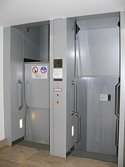 Dizalo ili lift služi za okomiti ili strmi prijevoz osoba i materijala, pa se i dijeli na osobno ili teretno dizalo. Za prijevoz (transport) se koriste otvorene ili zatvorene kabine s mogućnošću zaustavljanja na potrebnom broju stanica. Primjenjuju se u stambenim i poslovnim zgradama, rudnicima, industrijskim postrojenjima, brodovima, na gradilištima i slično. Pogon je uglavnom električni, s pogonskom užnicom i užetima na kojima vise kabina i protuuteg. Za poslovne zgrade iznad 10 katova i stambene zgrade iznad 30 katova koristi se neposredni električni pogon bez reduktora, s brzinama dizanja od 2,5 do 3 m/s a za televizijske tornjeve i do 7 m/s. Za zgrade s manjim brojem katova brzine dizanja su do 2 m/s. Nosivost osobnih dizala u pravilu je od 650 do 2 000 kilograma. Za manje visine dizanja (do približno 20 metara) koristi se i hidraulički pogon, s dizanjem kabine s pomoću hidrauličnog klipa i cilindra, s brzinom dizanja do 0,8 m/s. Dizala su opremljena posebnim uređajima za kočenje kabine koji ju osiguravaju u slučaju puknuća užeta ili prekomjerna povećanja brzine, zatim automatskim uređajima za upravljanje kabinom, za siguran ulazak i izlazak putnika i za usporeno gibanje kabine prilikom polaska i zaustavljanja. Automatski sigurnosni uređaj za zaustavljanje kabine konstruirao je 1852. američki izumitelj Elisha Graves Otis i prikazao njegov rad 1854. tako da je za vrijeme pokusa bio u dizalu. Nakon toga bio je otvoren put izgradnji visokih stambenih i poslovnih zgrada. Prvo dizalo (za 5 osoba) na parni pogon ugradio je u peterokatnicu E. G. Haughwort and Company u New Yorku 1857. Prvo osobno dizalo na električni pogon pušteno je u rad 1889. [1]