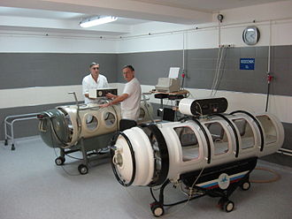 • Primjena rekompresijske barokomore.Barotraumatska dekompresijska bolest, u određenim slučajevima može biti tretirana u rekompresijskim barokomorama, u kojima se tlak plina u tijelu vraća na onaj koji je čovjek imao prije nastanka prebrzog snizivanja tlaka, a zatim se u strogo nadziranim uvjetima provodi spora dekompresija do normalizacije zdravstvenog stanja ronioca. Međutim, barokomora može i prouzročiti barotraumu ako osobe koje provode liječenje ne rade ispravno ili je zbog naglog pogoršanja zdravlja bolesnika (u cilju ukazivanja prve pomoći), izvedena nagla dekompresije barokomore.