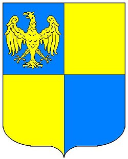 (HR) Podjela na četvrtine. 1 četvrtina na plavom polju zlatni orao, 2 i 3 četvrtina zlatno polje, 4 četvrtina plavo polje. [1/36] | |