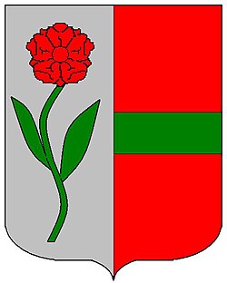(HR) Okomita podjela. Lijevo na srebrenom polju crveni cvijet na zelenoj drški s dva zelena lista, desno crveno polje dijeli vodoravna zelena greda. [1/43, 4/16] | |