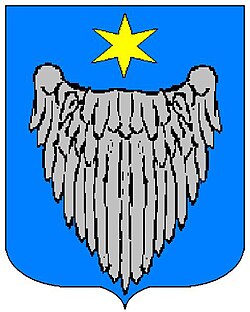 (HR) Na plavom polju par srebrenih krila, iznad krila šestero kraka zlatna zvijezda. [1/14, 2/17] | |