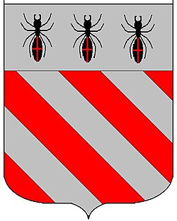 (HR) Na crvenom polju dva zlatna psa drže zlatni točak, psi stoje na zelenom trobrijegu. [1/46] |