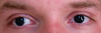 Oči osoba s albinizmom mogu izgledati crveno pod određenim svjetlosnim uvjetima zbog vrlo niske količine melanina. "Prave" crvene oči također postoje u albina pa čak i kod ne-albino populacije, ali su vrlo rijetke. U cijelom svijetu je poznato samo oko 20 slučajeva prirodno crvene boje očiju.