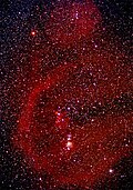 Barnardova petlja može se vidjeti na ovoj slici kao difuzni crveni polukrug. | |