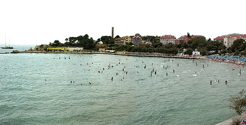 Uvala se prethodno nazivala Špalacijun i još do kraja 19. stoljeća kraj nje su se nalazili brojni vinogradi i polja. Prvo kupalište otvoreno je 1891. godine zalaganjem Ivana Košćine, a sastojalo se od dugog drvenog mula na stupićima zabodenim u pijesak i sa drvenim kabinama na obali. Godine 1901. plaža je podijeljena viskom ogradom na dva dijela, na muški i na ženski dio i bilo je zabranjeno muškarcima i ženama da se kupaju na plaži u isto doba dana. Staro kupalište stradalo je u nevremenu 1915. godine.[5]