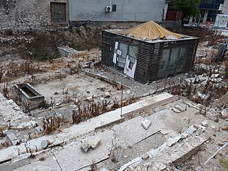 Prilikom radova za vodovod i kanalizaciju nađeni su ostaci zidova koji su bili definirani kao zidovi starokršćanskih dvojnih bazilika, nastalih u ranijem antičkom sklopu. Bazilike su bile ukrašene višebojnim mozaicima. Prilikom izgradnje temelja za jednu višekatnicu mozaici su uništeni, a radovi su poslije toga obustavljeni. Podizanje kršćanskih bazilika nad ostacima antičke građevine (kazališta-odeona) iztraživači temelje na nalazima novaca ostataka keramike.[4]
