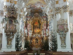 Izgradnja je obavljena od 1745. do 1754. god., a unutrašnjost je ukrašena freskama i štukom u tradiciji škole iz Wessobrunnera. „Sve je bilo izvedeno u crkvi na način da je nadnarovno postalo vidljivo. Kipovi i zidne slike su kombinirane kako bi se oslobodilo božansko u vidljivom obliku“[3].