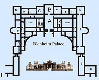 U svom materijalnu obliku Blenheim je izvanredan primjer rada Johna Vanburgha i Nicholasa Hawksmoora, dva najznačajnija engleska arhitekata tog vremena. Interijer u Velikoj oslikanoj dvorani (Great Drawing Room) slikama Louisa Laguerrea (1719–20) ističe razlog svog nastanka kao spomenik pobjede vojvode od Malborougha.