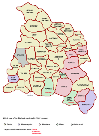 Općina Medveđa podjeljena je na 44 naselja.