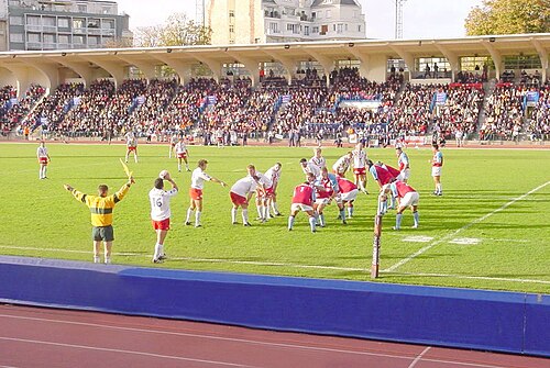 Utakmica na razini igrača starijih od osamnaest godina traje osamdeset minuta, a sastoji se od dva poluvremena od po 40 minuta uz mogući sučev dodatak za vrijeme potrošeno na ukazivanje pomoći ozljeđenim igračima. Utakmicu kontroliraju glavni sudac, dva pomoćna suca (touch judges), a u većini utakmica na profesionalnoj razini koristi se i sudac koji koristi pomoć televizije (television match official, TMO), poznat i pod nazivom video referee.