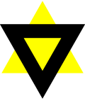 - prazni crni trokut iznad žutog trokuta – Židovi označeni kao "skrnavitelji rase" (njem. Rasseschänder)