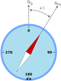 Znači, magnetski se polovi Zemlje ne poklapaju sa zemljopisnim, pa magnetska igla neće pokazivati baš točno pravac sjever-jug. Okomita ravnina, položena kroz uzdužnu os magnetske igle, zove se magnetski meridijan. Kut što ga magnetski meridijan zatvara sa zemljopisnim meridijanom zove se magnetska deklinacija. Ona se označuje s plus ako sjeverni pol igle kompasa leži istočno, a s minus ako leži zapadno od zemljopisnog meridijana. Njezina je vrijednost različita na raznim mjestima Zemlje. U blizini zemljopisnih i magnetskih polova Zemlje ona se vrlo brzo mijenja, dok na samim magnetskim polovima postaje neodređena jer nema meridijana od kojeg se broji. U Zagrebu krajem 2017. godine iznosi oko +4°. Krivulje koje spajaju mjesta na Zemlji koje imaju istu magnetsku deklinaciju zovu se izogone. U magnetskim polovima Zemlje sastaju se sve izogone. Agona je krivulja deklinacije 0°. [2]