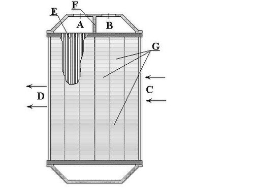 Na slici desno je prikazan rashladnik zraka motora s unutarnjim izgaranjem. A i B su ulaz i izlaz rashladne tekućine, C i D pokazuju strujanje zraka, E označava cijevi rashladnika na kojima su postavljene lamele G. Slovom F prikazana je pregrada na poklopcu rashladnika.
