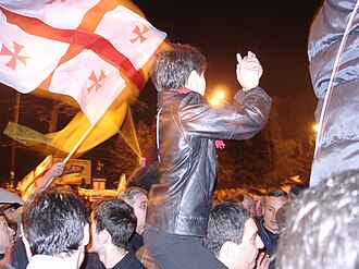 2003. godine Ševardnadze je svrgnut u Revoluciji ruža, nakon što su gruzijska oporba i međunarodni promatrači tvrdili da je na parlamentarnim izborima 2. studenog narušena regularnost[37]. Revoluciju su vodili Mihail Saakašvili, Zurab Žvania i Nino Burjanadze, bivši članovi i vođe Ševardnadzeove stranke. Mihail Saakašvili je izabran za predsjednika Gruzije 2004. godine.