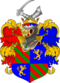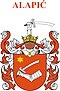 | Blažević[1][2] | 13. st. - danas | ŠTIT: Vodoravno razdijeljen na crveno i zlatno polje. Polja štita razdjeljuju četiri zlatna povezana šiljka. NAKIT: Iznad štita je kruna iz koje se propinje raskriljeni zlatni zmaj okrunjen zlatnom krunom. PLAŠT: Grb je uokviren stiliziranom baroknom kartušom. Blaževići su potekli iz kneževske loze Kardišić ili Danac. Pripadaju hrvatskom praplemstvu.[2] | Slika | |