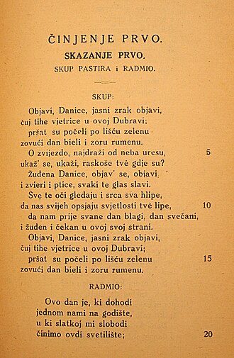 - Ivan Gundulić: Dubravka, Dubrovnik, 1837.