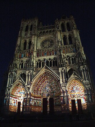 Stara katedrala u Amiensu, važnom trgovačkom i tekstilnom središtu Francuske sjeverno od Pariza, izgorjela je 1218. godine. Poput katedrale u Chartresu, crkveni službenici su se posvetili da je obnove i izgrade još veličanstveniju građevinu. Sredstva za katedralu su uglavnom došla od crkvenih seoskih posjeda i trgovačkih prihoda. Gradnja je započela 1220. godine i nastavila se sljedećih sedamdeset godina. Rezultat je bio nadmoćni arhitektonski izraz gotičke okomitosti. Glavni brod, koji je širok samo 12 metara ima visinu od nevjerojatna 42 metra, čime se stvara čudesan dojam stremljenja visinama.